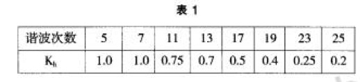 國家標(biāo)準(zhǔn) GB/T14549—93中推薦 ,兩個(gè)諧波源的同次諧波 電流在 同一地點(diǎn) 的同一相上疊加 ,當(dāng)相 位不 確定 時(shí)可按下式 進(jìn)行計(jì)算 :Ih=、/Ih1+I}l22+Kh1IhlI}l2 式 中 Kh系數(shù)按表 2選取 。I 和 I分別為諧波源 1和 2的 第 h次諧波 電流 ,單位為 A。