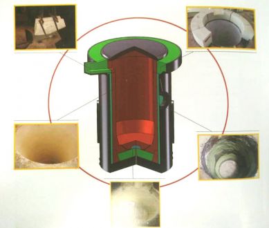 為了能使方便在拆解推出需要重新施工的爐襯時,我們一般都會使用備襯,也叫滑動平面層,使用備襯能省力的去除需要重新施工的爐襯,同時還能起到一個保護線圈漿料的作用,我們現(xiàn)在使用石棉布為備襯,石棉布在作為背襯使用方面一直有其不可避免的缺點,首先是其石棉成分對人體健康的影響,因為石棉纖維在被人體吸入肺部后是很難排出體外的,嚴重的還會產(chǎn)生致癌性,所以大家無論是在工作中的任何作業(yè)時都應(yīng)該配備好公司所配發(fā)的勞保用品。第二,就是石棉布的韌性不夠,我們在爐底和爐襯施工時經(jīng)常有不小心碰到石棉布而造成石棉布破損,給我們帶來不小的麻煩,而這些破損處如果萬一沒有及時處理就有可能有影響爐襯安全的問題出現(xiàn)。還有一點就是其熱導(dǎo)率的問題,石棉本身就是一種隔熱物體,在我們的爐襯使用中爐襯一直有著比較分明的溫度梯度,由于石棉布的熱導(dǎo)率較差和其厚度過厚等原因會影響到爐襯的熱損效果造成爐襯松散層厚度減少,這給我們的生產(chǎn)使用過程帶來一定的安全隱患。由于石棉布存在著以上缺點,現(xiàn)在一些鑄造廠家都在使用云母紙來替代石棉布,云母紙有較好的韌性,而且其厚度只有0.32毫米,根本不會影響到爐襯的溫度梯度。另外由于云母紙的不透氣性也能大大降低爐襯在燒結(jié)過程中由于爐襯料中的水氣問題造成的誤報警次數(shù)等這些優(yōu)點使云母紙迅速的普遍作為備襯使用。在鋪設(shè)備襯前要根據(jù)電爐的大小高度提前準(zhǔn)備好,鋪設(shè)時先清除上次遺留在爐壁上的材料,清除干凈后才能鋪設(shè),鋪設(shè)時要一人下到爐膛內(nèi)部,另一人則站在爐子上面把備襯料垂直放下,長度為超出爐底頂出塊10-20CM最好,然后由爐內(nèi)人員負責(zé)將它捋平,讓其緊貼爐壁,然后在放第二塊備襯,放第二塊備襯時要和第一塊重疊搭接10CM左右,防止加爐襯料時沖開備襯,依次類推放下其剩余備襯料,直到把爐子線圈完全遮住.